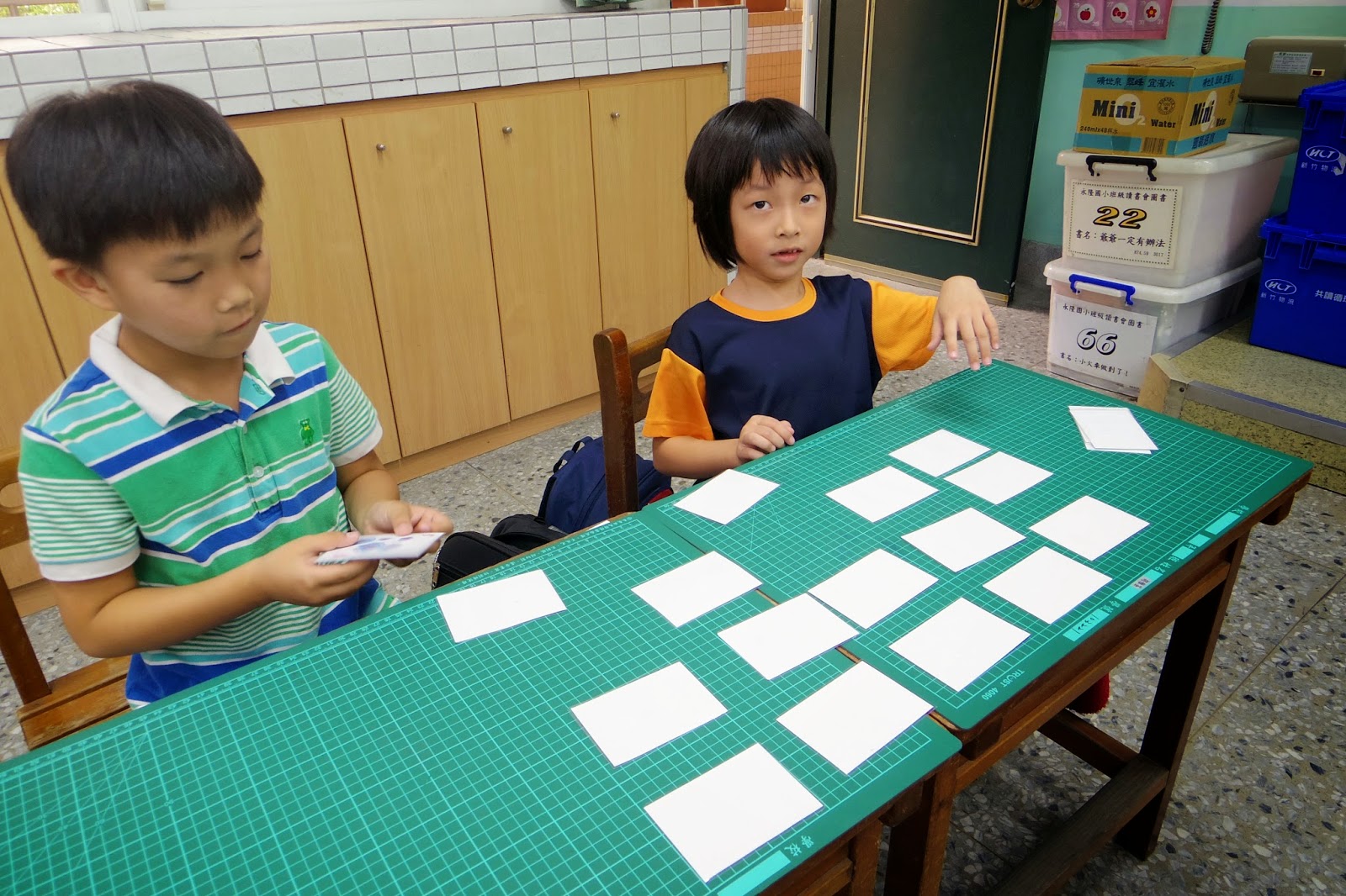 我們分組進行"聽音拍字卡"的遊戲
