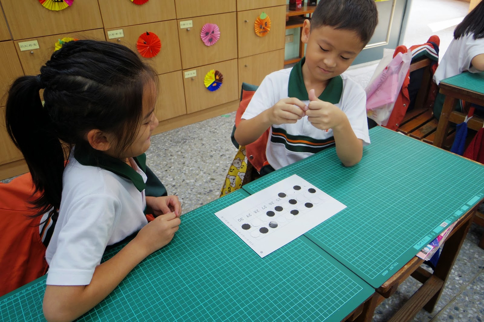 小考時暫時用書包拉出跟鄰座的距離
